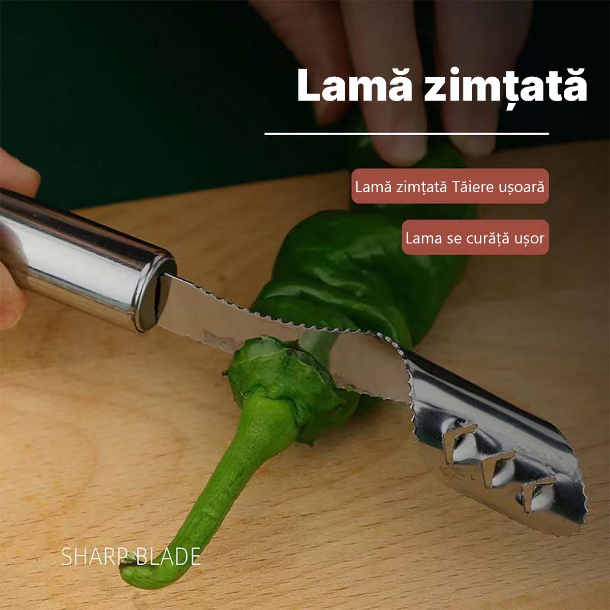 🔩 Oțel inoxidabil german 304|Material din oțel de calitate alimentară, gros, rezistent la rugină, îndepărtează semințele de ardei iute și codițele de roșii cu o singură mișcare, nu se decolorează în timp.